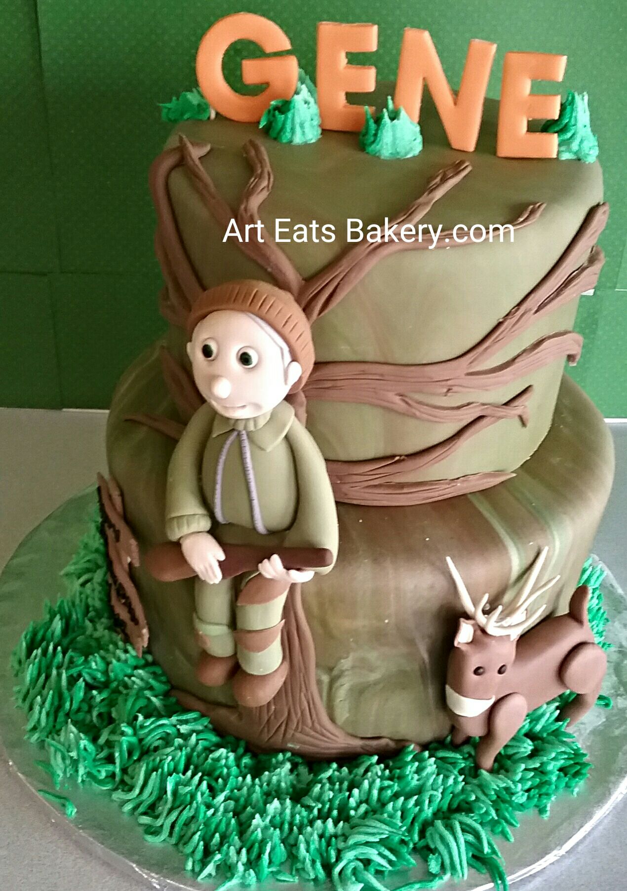 Cute 2 tier #hunter's custom unique creative #birthday #cake with edible tree, #camouflage , grass, #deer, #gun and sugar figure. #bakery #birthdayboy #foodie #food #cakedecorating #greatupstatecom #whatsgoingongvl #Igresgreenville #greenville #Simpsonville #southcarolina #Spartanburg #yeahthatgreenville #eatthatgreenville #lovelocal